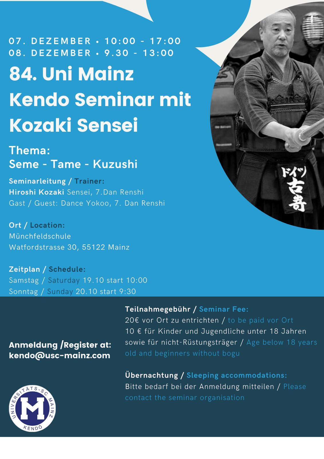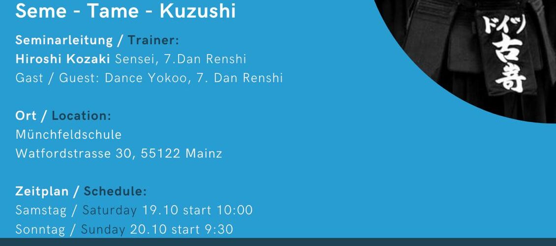 das vierte Seminar mit Kozaki Sensei im Jahr 2024 steht bevor. Am 07./08.12. ist es wieder soweit. Thema Seme – Tame – Kuzushi