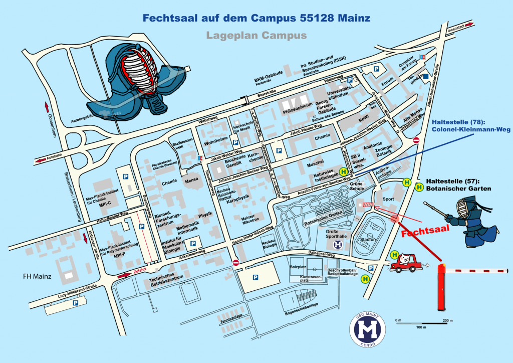 Den Trainingsraum des Dôjôs findet ihr in den Sportstätten der Universität Mainz, unter der Albert Schweitzer-Str. 22, 55128 Mainz.